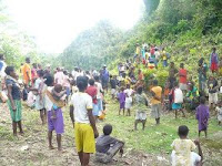 Kairawi (3 hours from Serui by bus and crossing using rowboat for 15 minutes),